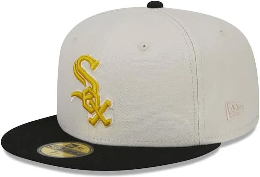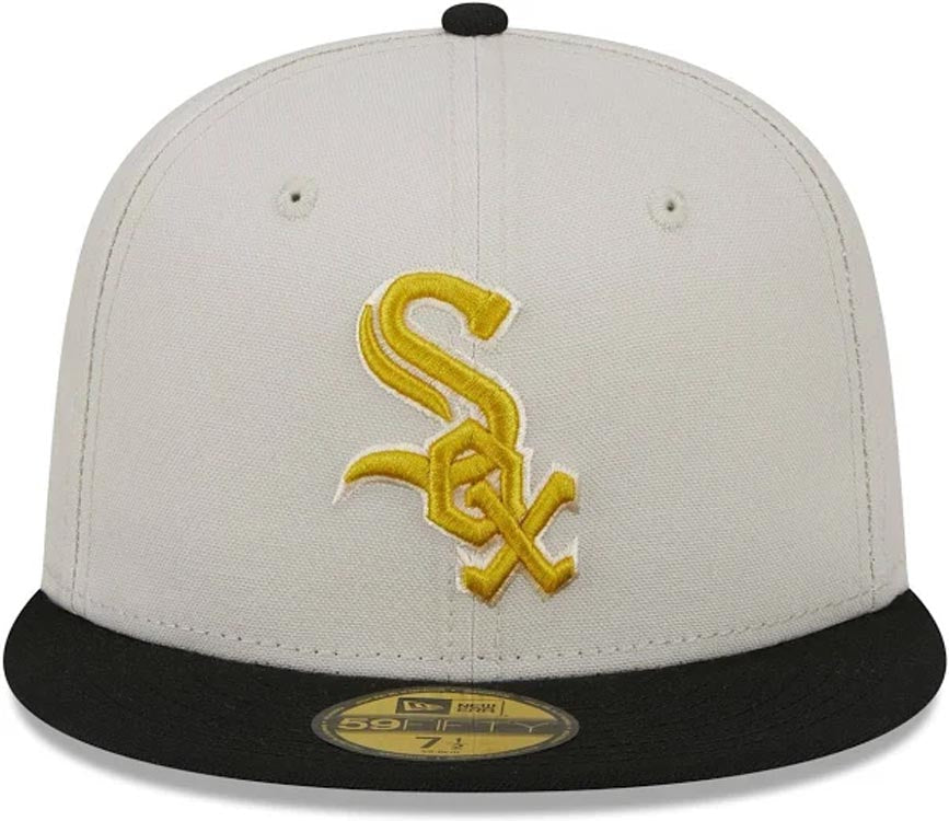 Chicago White Sox New Era MLB 59FIFTY 5950 Fitted Cap Hat Stone Crown Black Visor Metallic Gold Logo 95th Anniversary Side Patch Gray UV