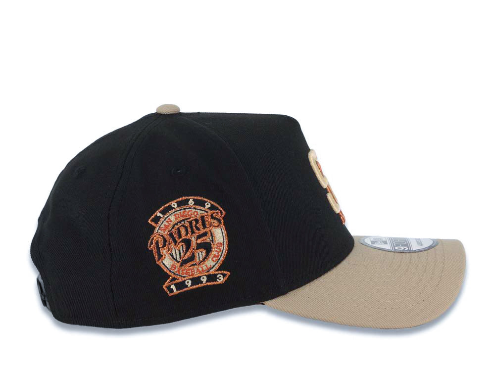 San Diego Padres New Era MLB 9FORTY 940 Adjustable Cap Hat Black Crown Wheat Visor Team Color Logo 25th Anniversary Side Patch