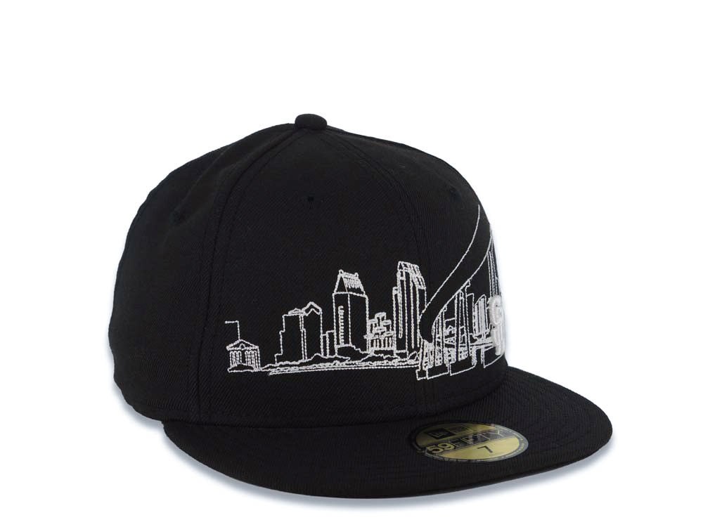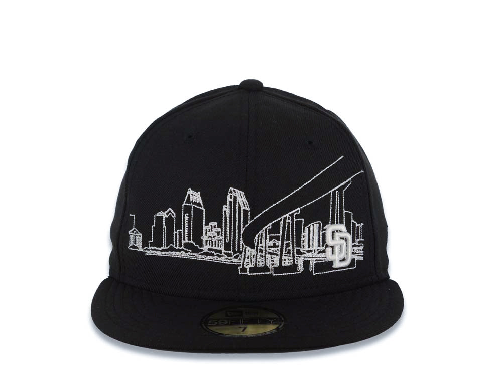 San Diego Padres New Era MLB 59FIFTY 5950 Fitted Cap Hat Black Crown/Visor White Flawless City Scape Logo