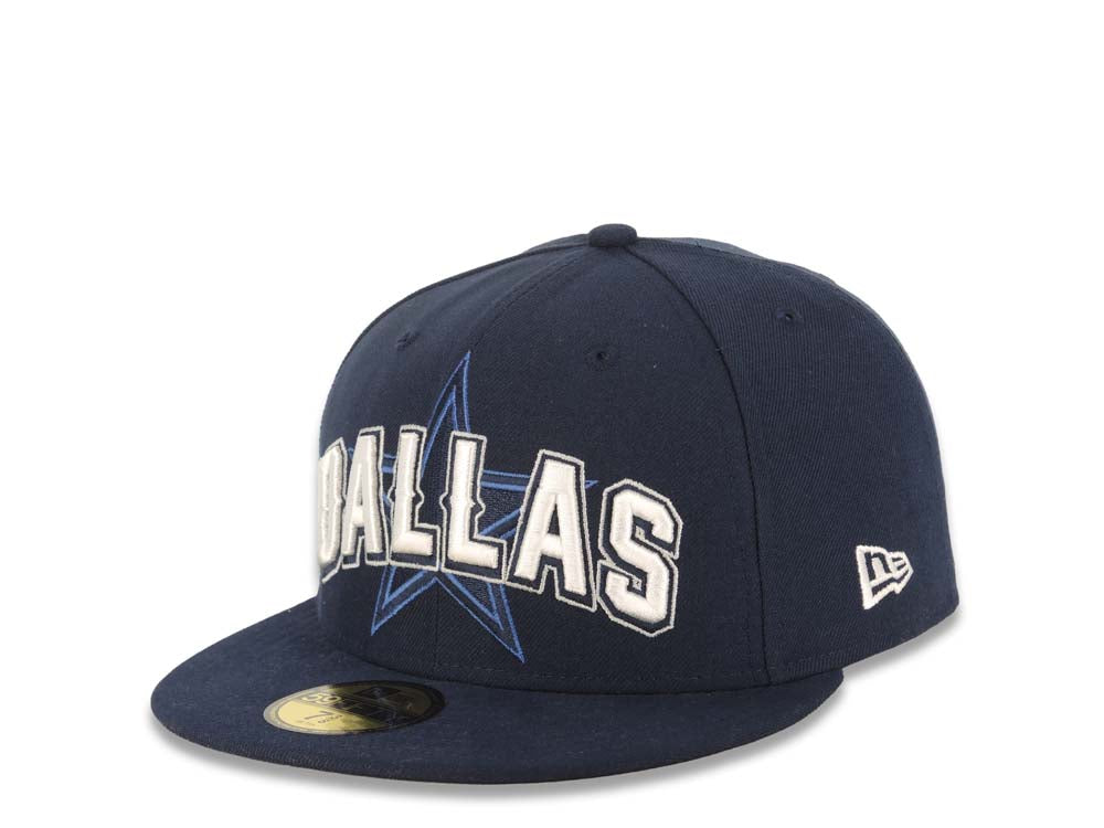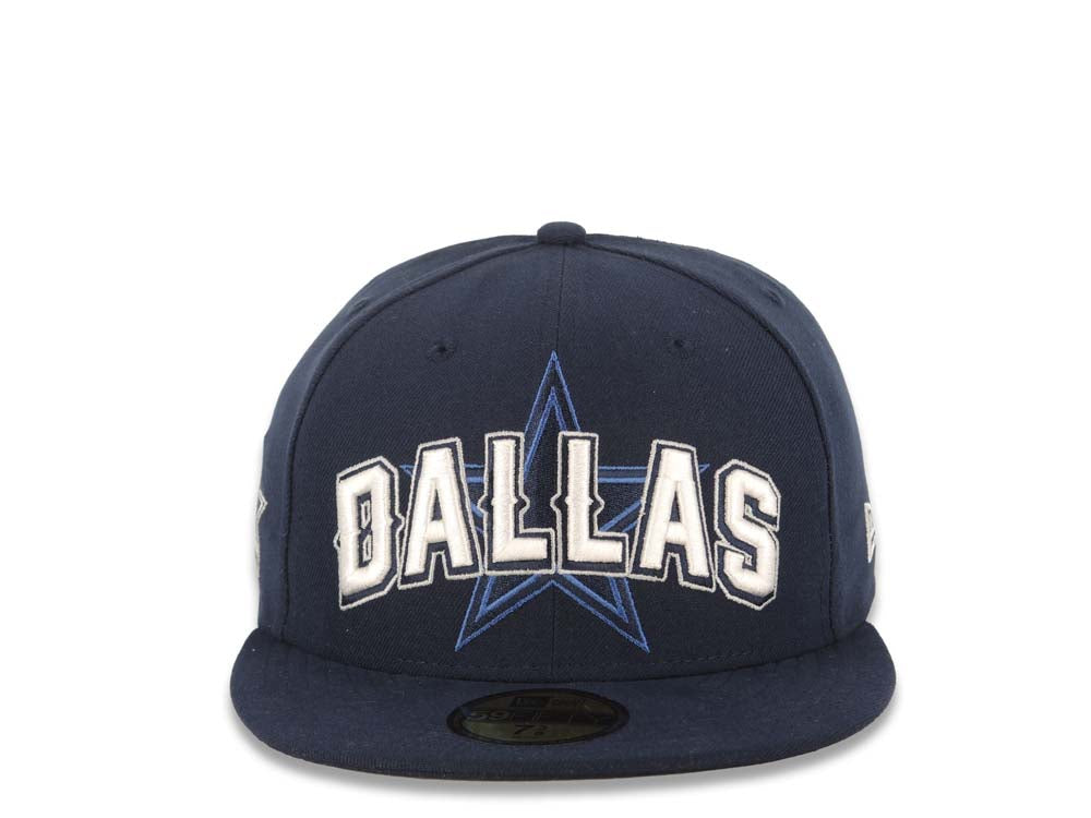 Dallas Cowboys New Era NFL 59FIFTY 5950 Fitted Cap Hat Light Navy Blue Crown/Visor White Script Logo (2012 Draft)