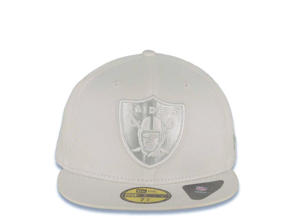 Oakland Raiders New Era NFL 59FIFTY 5950 Fitted Cap Hat White Crown/Visor Gray Logo