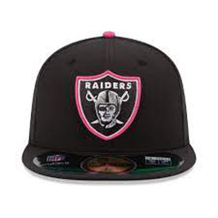 Oakland Raiders New Era NFL 59FIFTY 5950 Fitted Cap Hat Black Crown/Visor Team Color/Pink Logo (Breast Cancer Awareness)