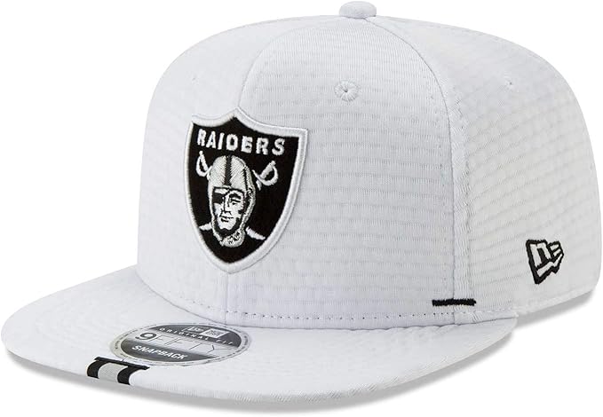 Oakland Raiders New Era NFL 9FIFTY 950 Snapback Cap Hat White Crown/Visor Black/White Logo (2019 Traning)