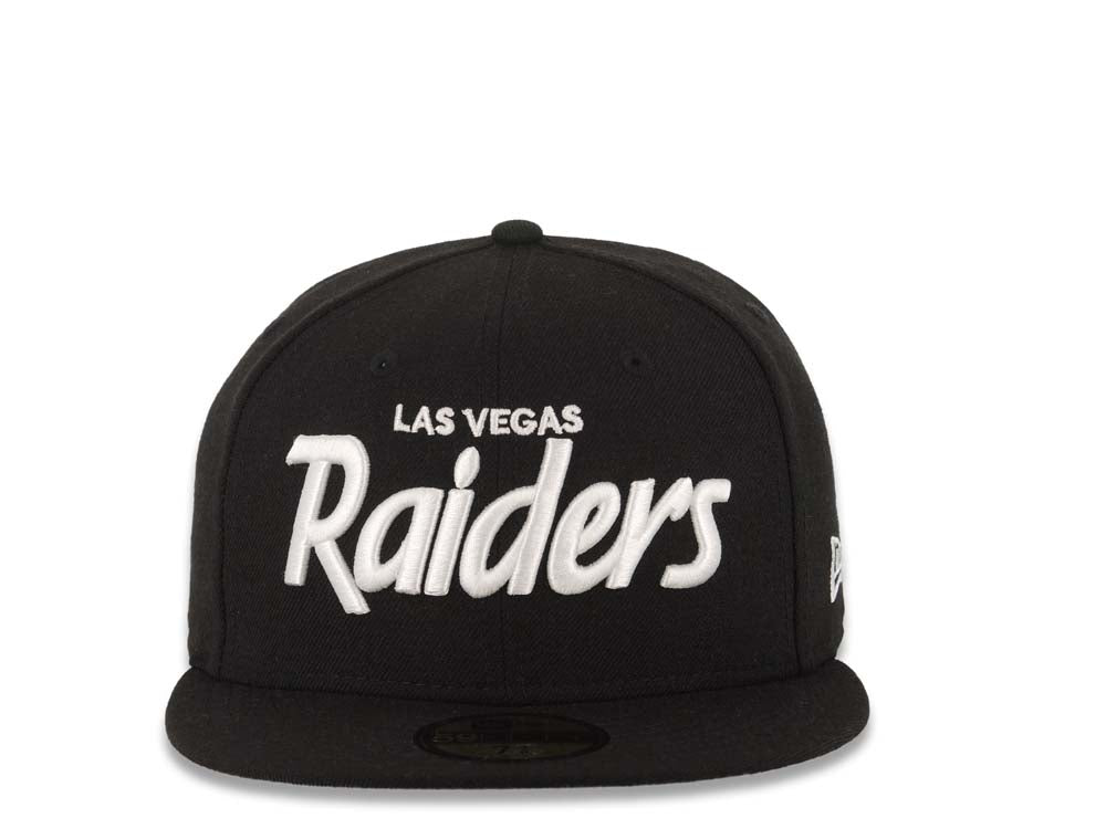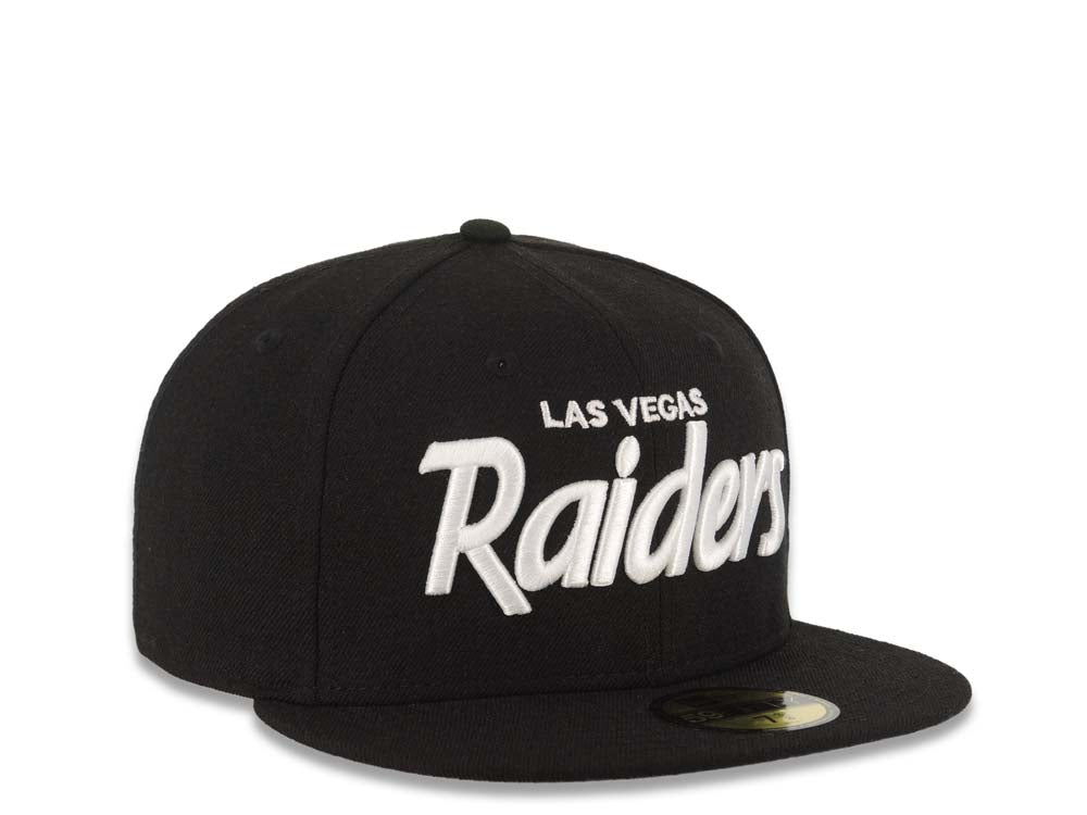 Las Vegas Raiders New Era NFL 59FIFTY 5950 Fitted Cap Hat Black Crown/Visor White Script Logo