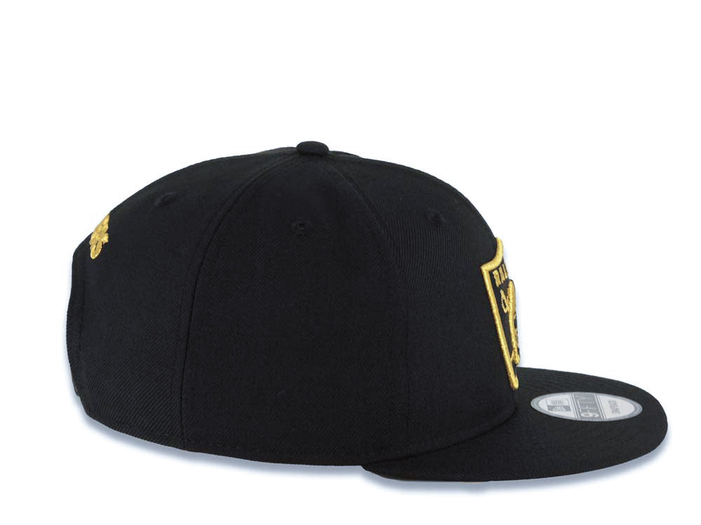 Las Vegas Raiders New Era NFL 9FIFTY 950 Snapback Cap Hat Black Crown/Visor Metallic Gold Logo Black UV