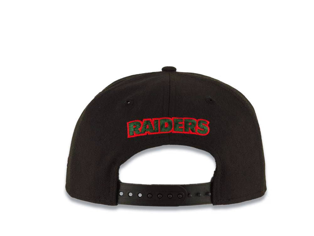 Las Vegas Raiders New Era NFL 9FIFTY 950 Snapback Cap Hat Black Crown/Visor Red/Green Logo Green UV