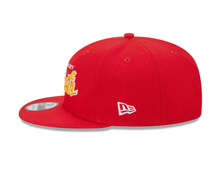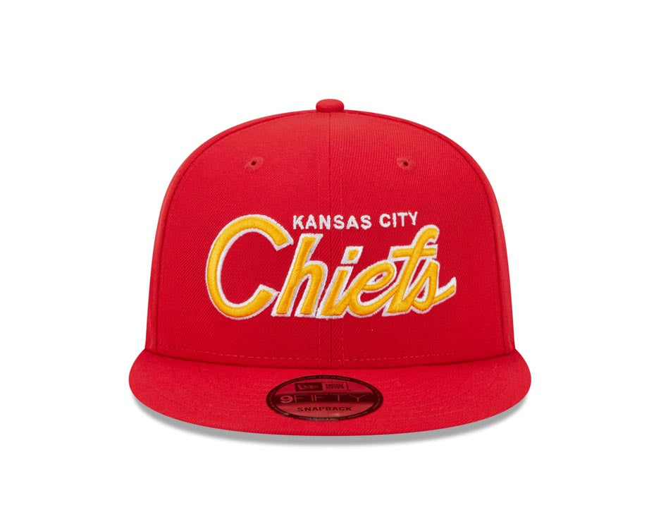 Kansas City Chiefs New Era NFL 9FIFTY 950 Snapback Cap Hat Red Crown/Visor Yellow Text/Script Logo