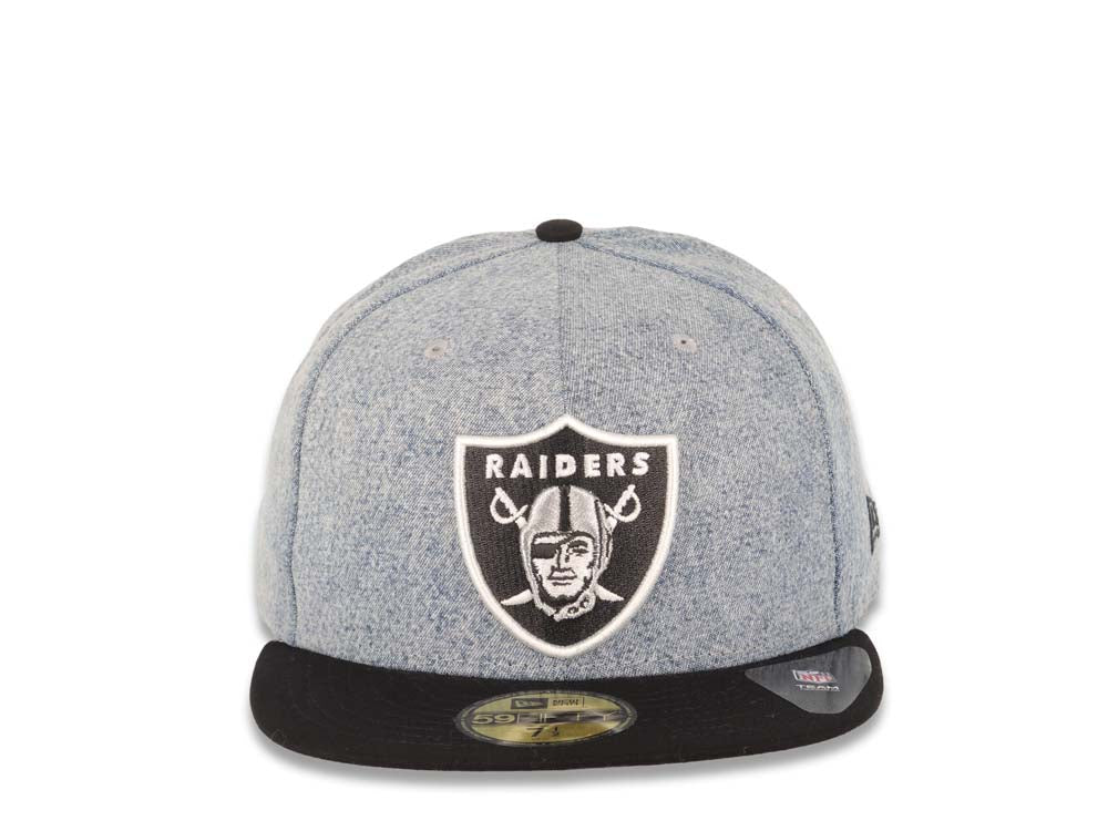 Oakland Raiders New Era NFL 59FIFTY 5950 Fitted Cap Hat Blue Denim Crown Black Visor Team Color Logo