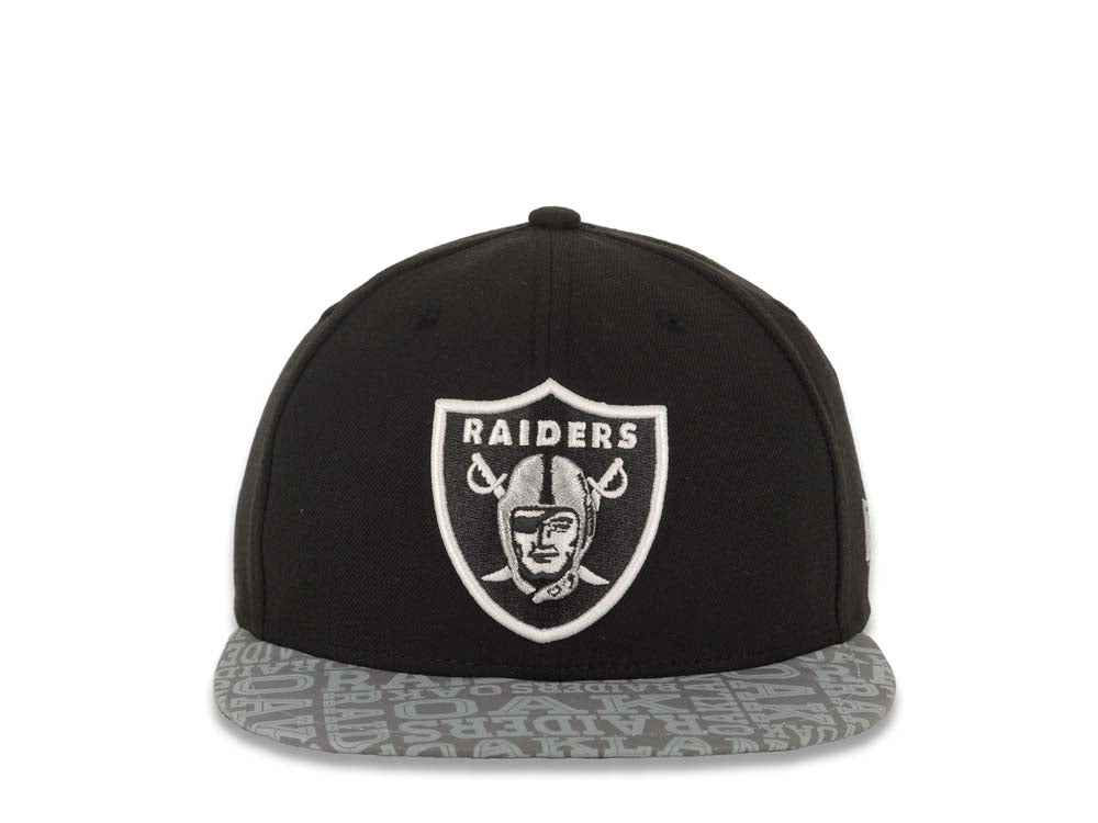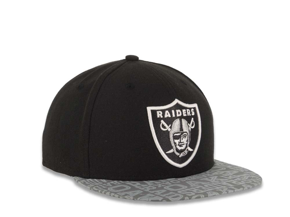 Oakland Raiders New Era 59FIFTY 5950 Fitted Cap Hat Black Crown Gray Reflective Visor Team Color Logo