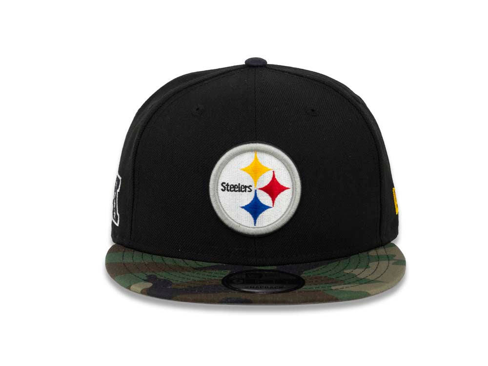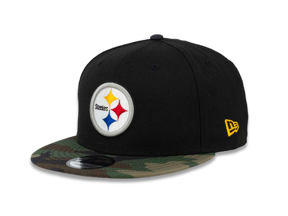 Pittsburgh Steelers New Era NFL 9FIFTY 950 Snapback Cap Hat Black Crown Camo Visor Team Color Logo