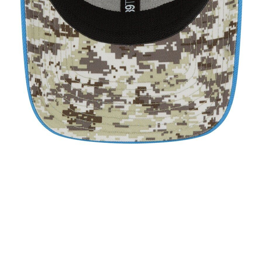 • Load image into Gallery viewer, Los Angeles Chargers New Era NFL 39THIRTY 3930 Flexfit Cap Hat Black Crown Sky Blue Visor Team Color Logo (2022 Salute To Service)