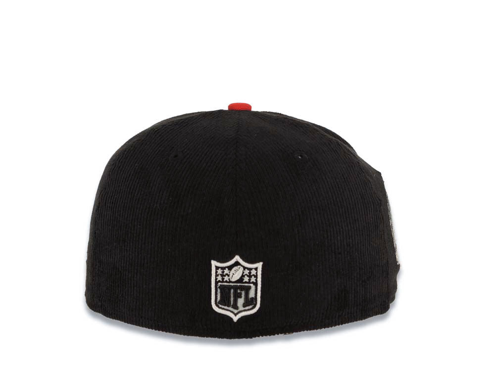 (Corduroy Crown) Las Vegas Raiders New Era NFL 59FIFTY 5950 Fitted Cap Hat Black Crown Red Visor White Script/Text Logo 60th Anniversary Side Patch