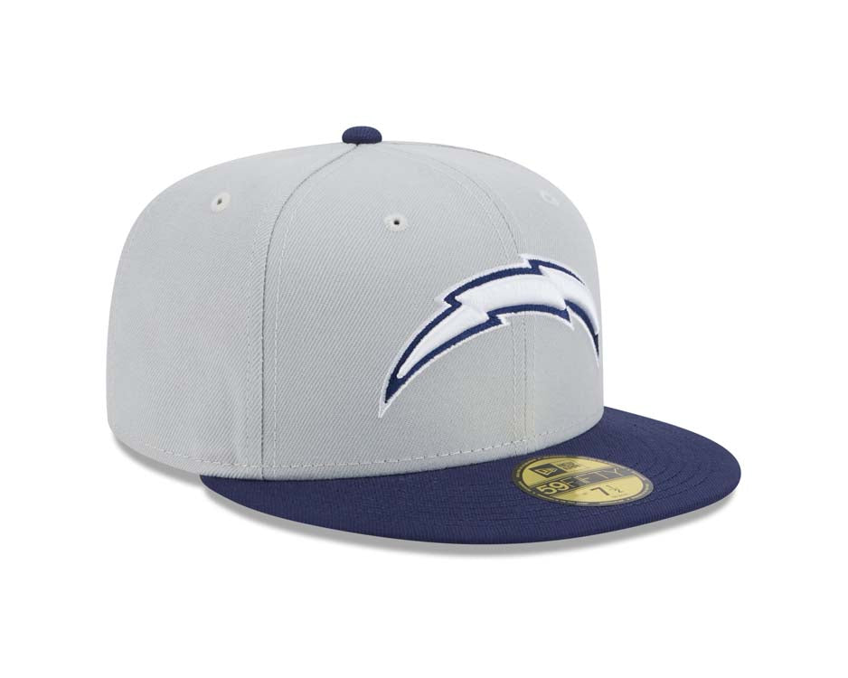 Los Angeles Chargers New Era NFL 59FIFTY 5950 Fitted Cap Hat Gray Crown Navy Blue Visor White/Navy Blue Logo (2-Tone Color Pack)