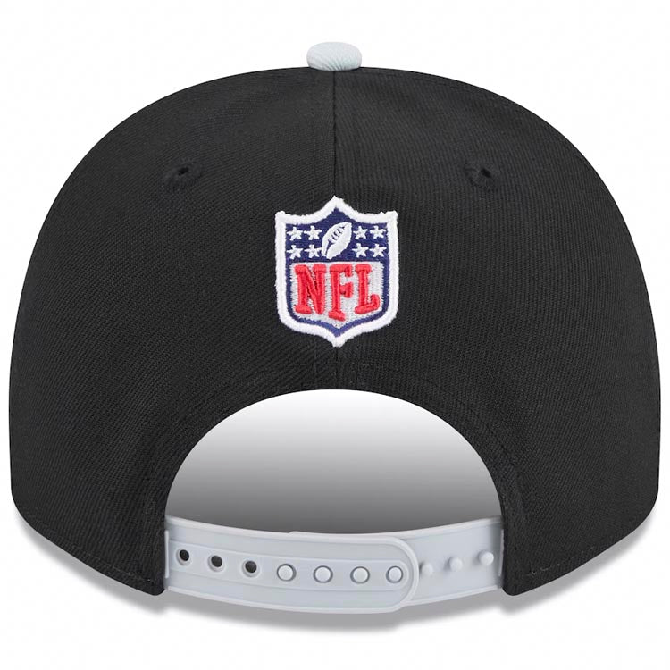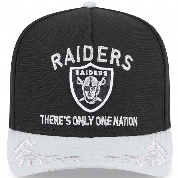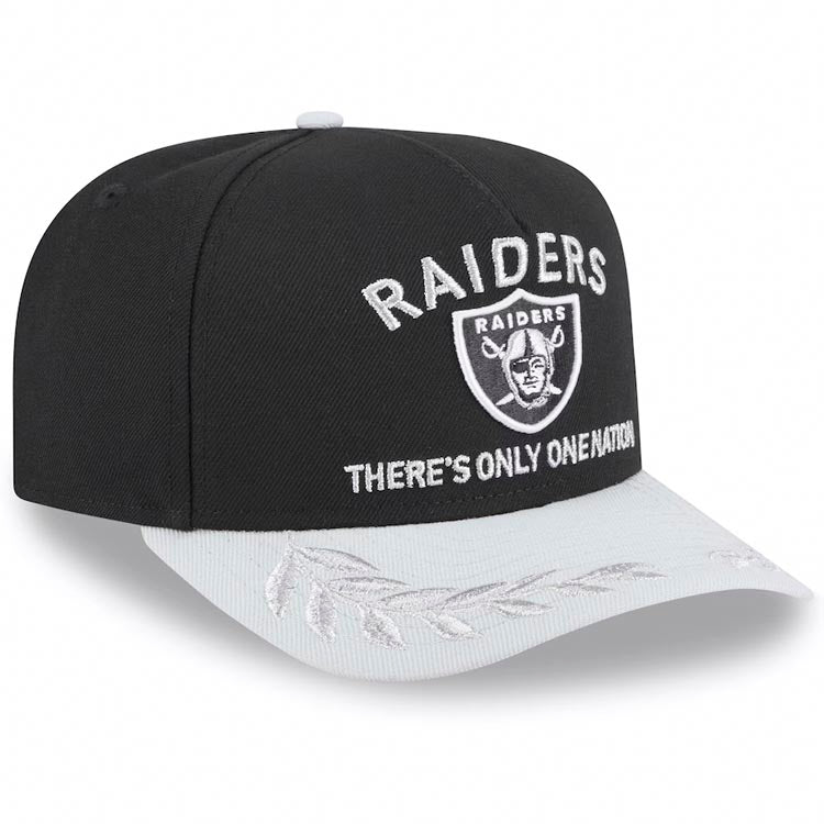 Las Vegas Raiders New Era NFL 9FIFTY 950 A-Frame Snapback Cap Hat Black Crown Gray Visor Team Color with Text Logo (2025 Draft)