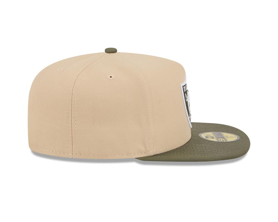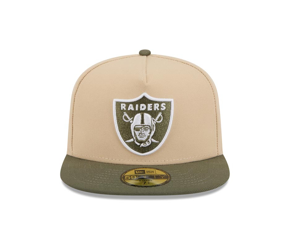 Las Vegas Raiders New Era NFL 59FIFTY 5950 Fitted A-Frame Cap Hat Khaki Crown Olive Green Visor Green/White Logo
