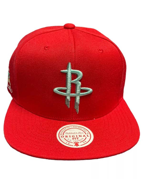 Houston Rockets Mitchell & Ness NBA Snapback Cap Hat Red Crown/Visor Green Logo Inverted