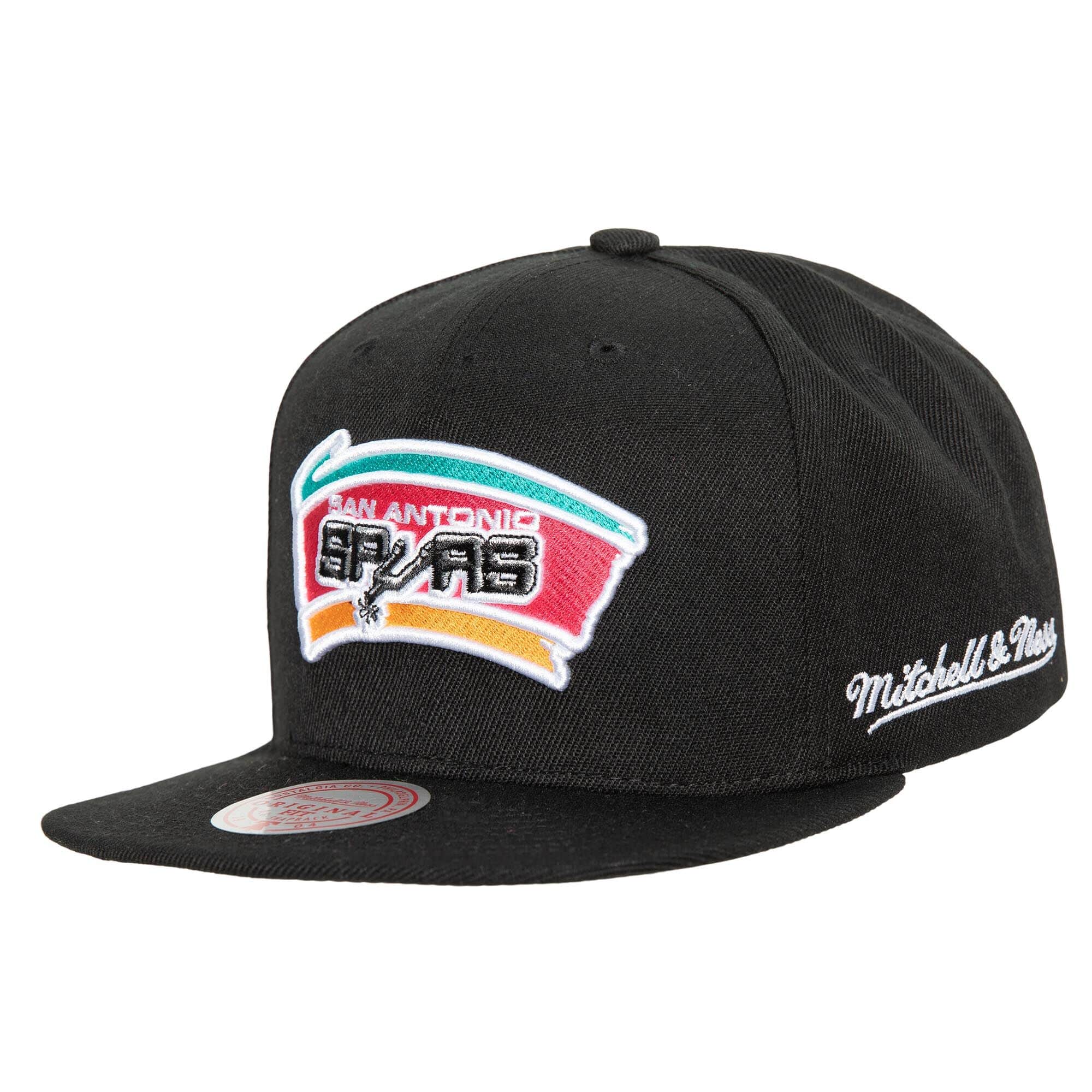 San Antonio Spurs Mitchell & Ness NBA Snapback Cap Hat Black Crown/Visor Team Color Logo English Text/Script Back Logo
