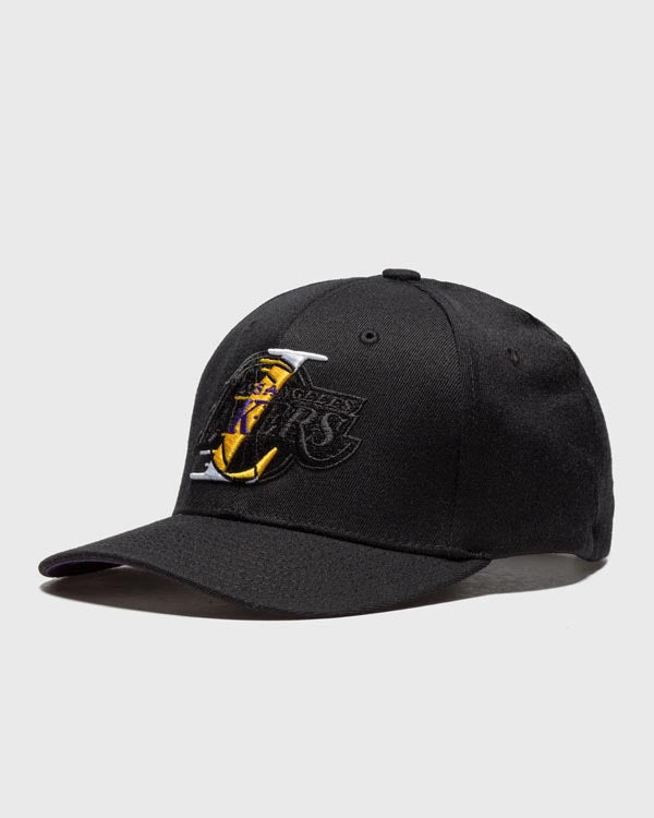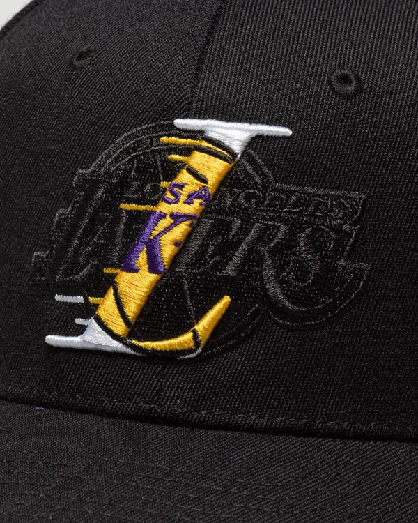Los Angeles Lakers Mitchell & Ness NBA First Letterman Redline Snapback Cap Hat Black Crown/Visor Team Color Logo
