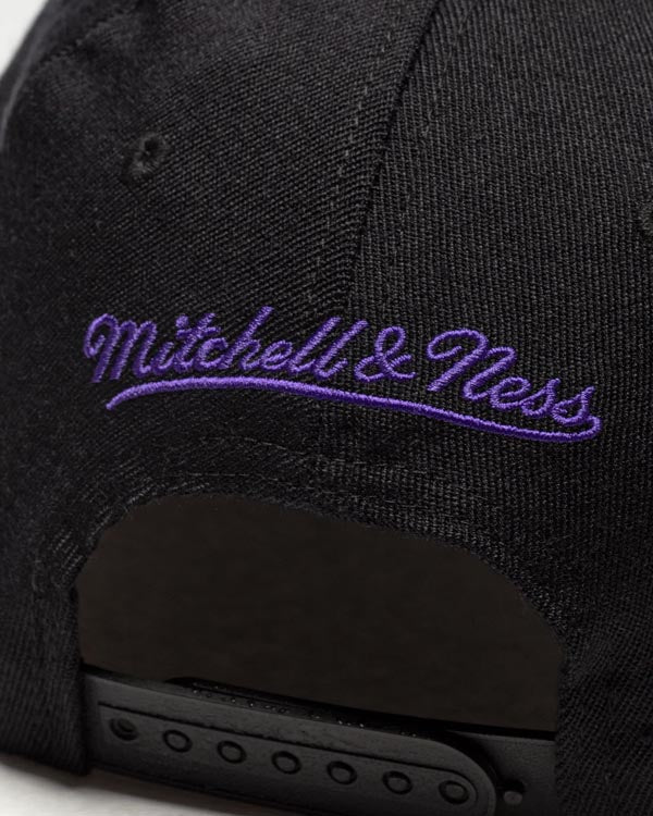 • Load image into Gallery viewer, Los Angeles Lakers Mitchell & Ness NBA First Letterman Redline Snapback Cap Hat Black Crown/Visor Team Color Logo