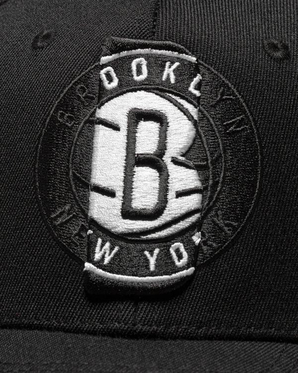 Brooklyn Nets Mitchell & Ness NBA First Letterman Redline Snapback Cap Hat Black Crown/Visor Team Color Logo