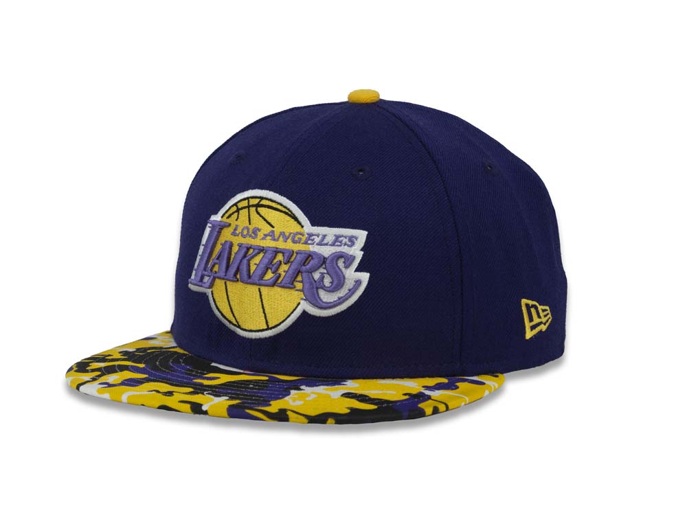 Los Angeles Lakers New Era NBA 59FIFTY 5950 Fitted Cap Hat Purple Crown Yello/Purple Camo Visor Team Color Logo