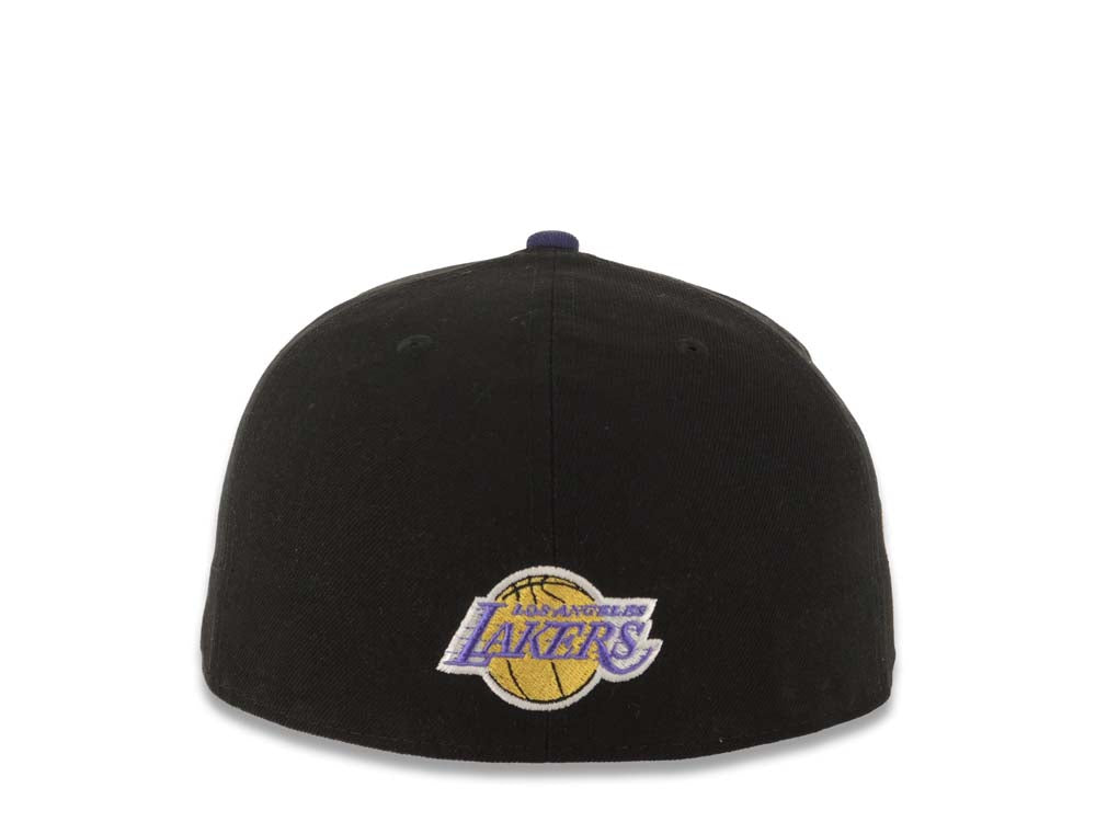 Los Angeles Lakers New Era NBA 59FIFTY 5950 Fitted Cap Hat Black Crown Purple Visor Team Color Logo (Edge Flare)