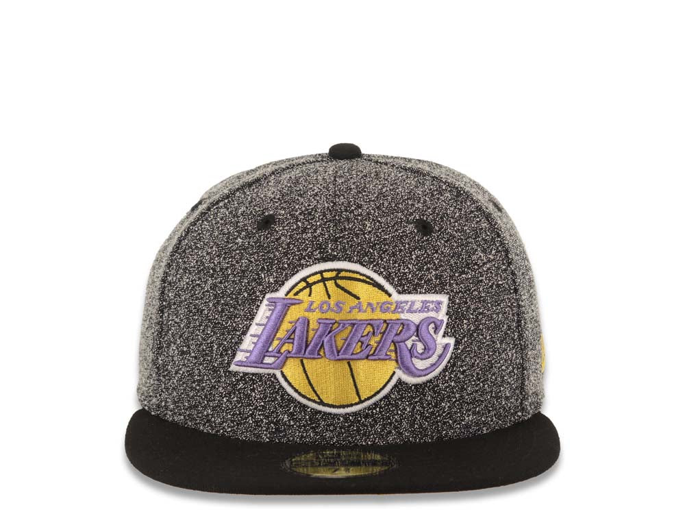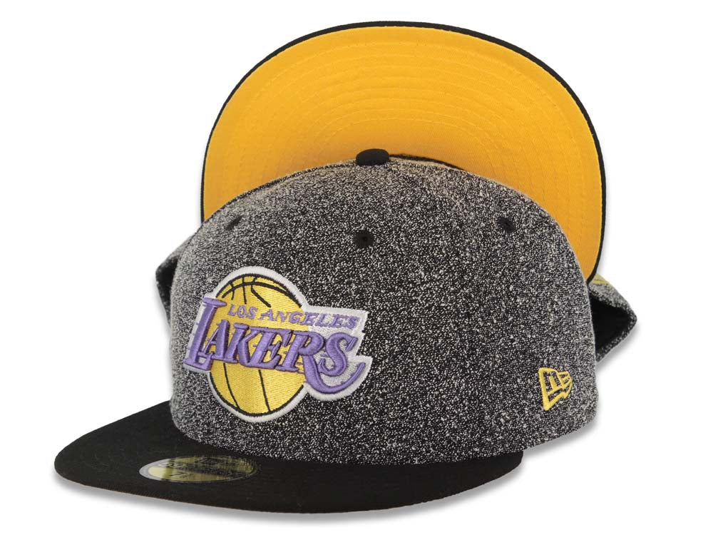 Los Angeles Lakers New Era NBA 59FIFTY 5950 Fitted Cap Hat Black Crown Black Visor Team Color Logo