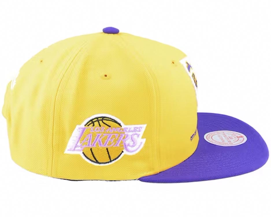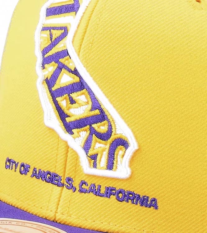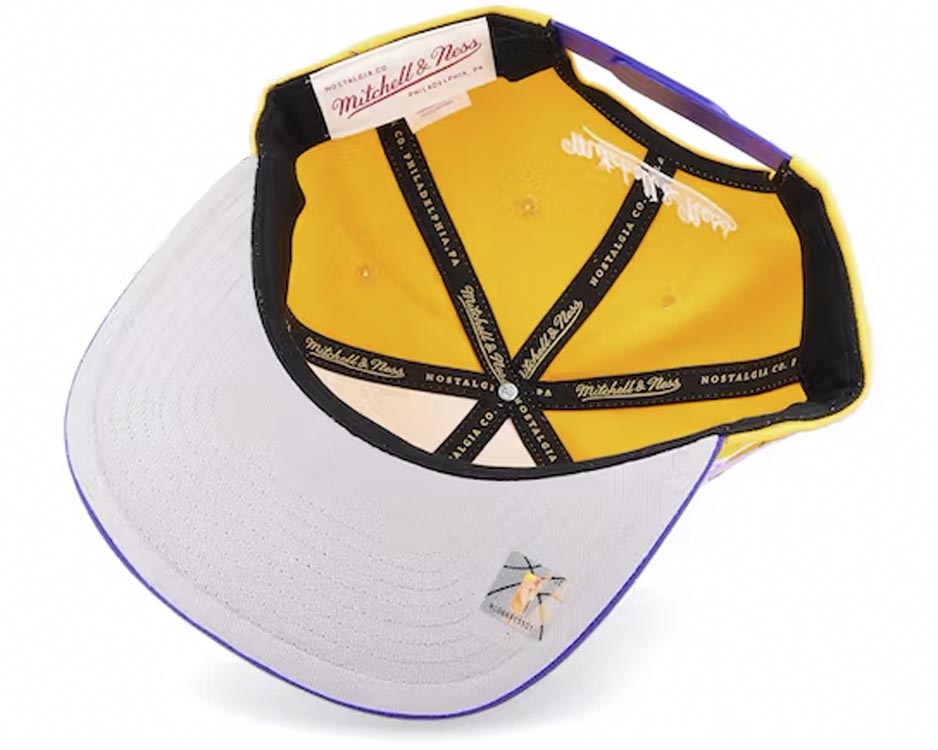 Los Angeles Lakers Mitchell & Ness NBA Snapback Cap Hat Yellow Crown Purple Visor Team Color Logo Inside State Map (Team Insider)