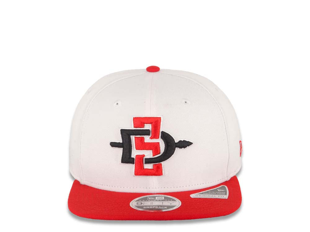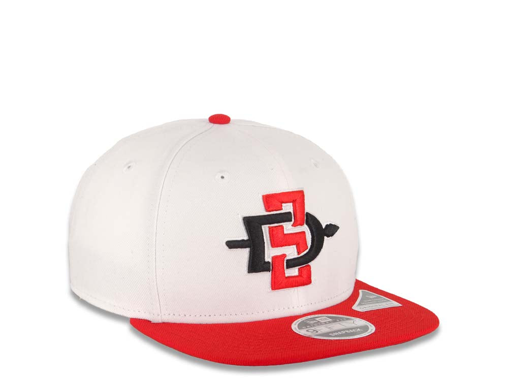 San Diego State Aztecs New Era NCAA 9FIFTY 950 Original Fit Snapback Cap Hat White Crown Red Visor Team Color Logo