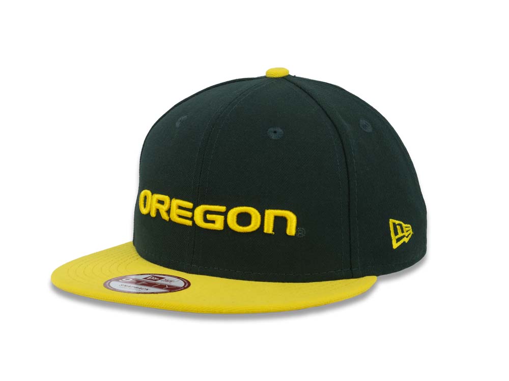 Oregon Ducks New Era 9FIFTY 950 Snapback Cap Hat Green Crown Yellow Visor Yellow Text/Script Logo (Bind Back)