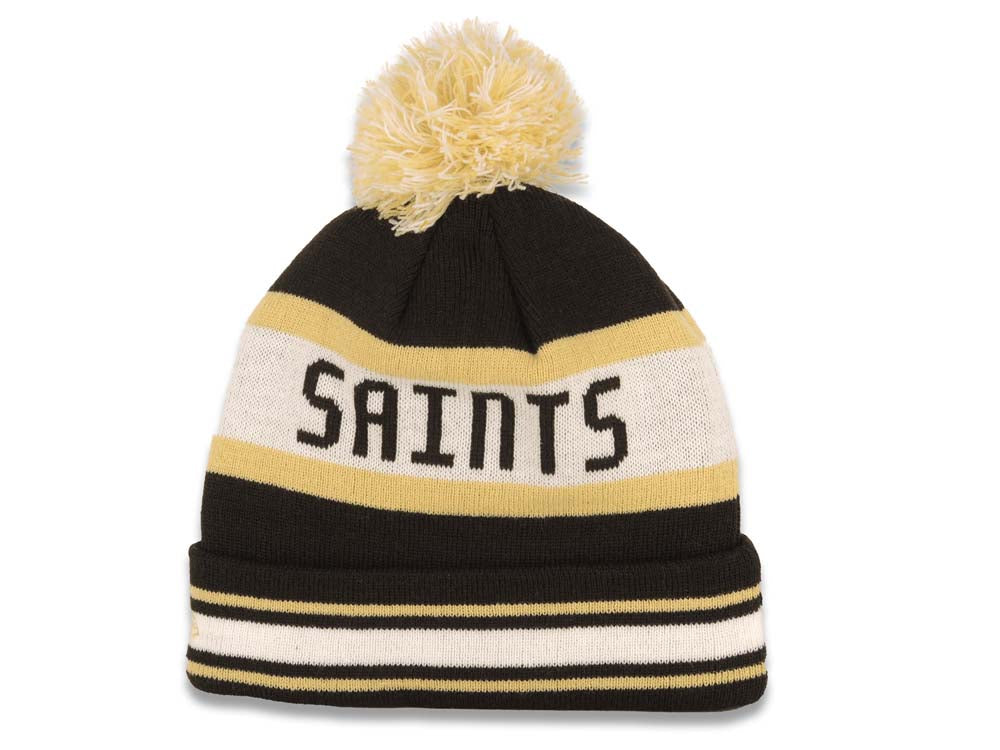 New Orleans Saints New Era NFL Cuffed Pom Jake Beanie/Knit Hat Black/Wheat/White Crown/Visor Team Color Logo