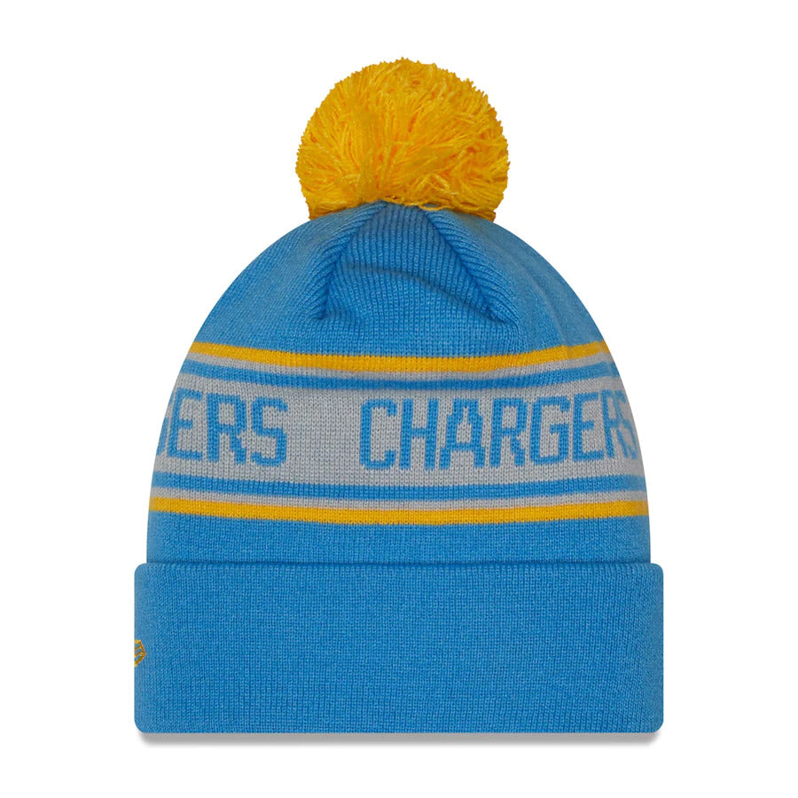 Los Angeles Chargers New Era NFL Cuffed Pom Knit Beanie Hat Sky Blue/White/Yellow Crown/Visor Team Color Logo (Repeat)