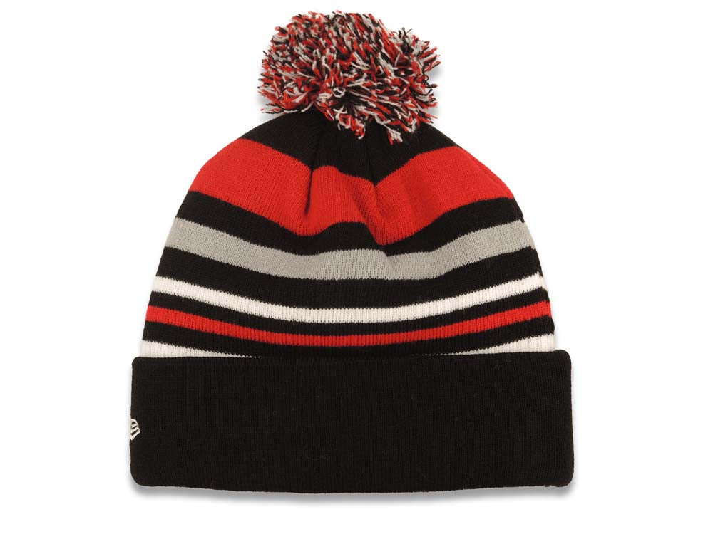 Chicago Bulls New Era NBA Cuffed Pom Beanie/Knit Hat Red/Black/White Crown/Visor Team Color Logo (Stripe Out)