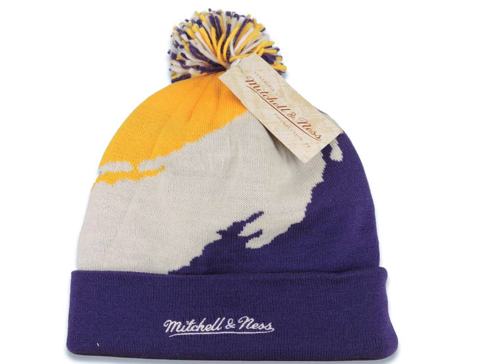 Los Angeles Lakers Mitchell & Ness NBA Pom Paint Knit Beanie Yellow/White/Purple Crown/Visor Team Color Logo
