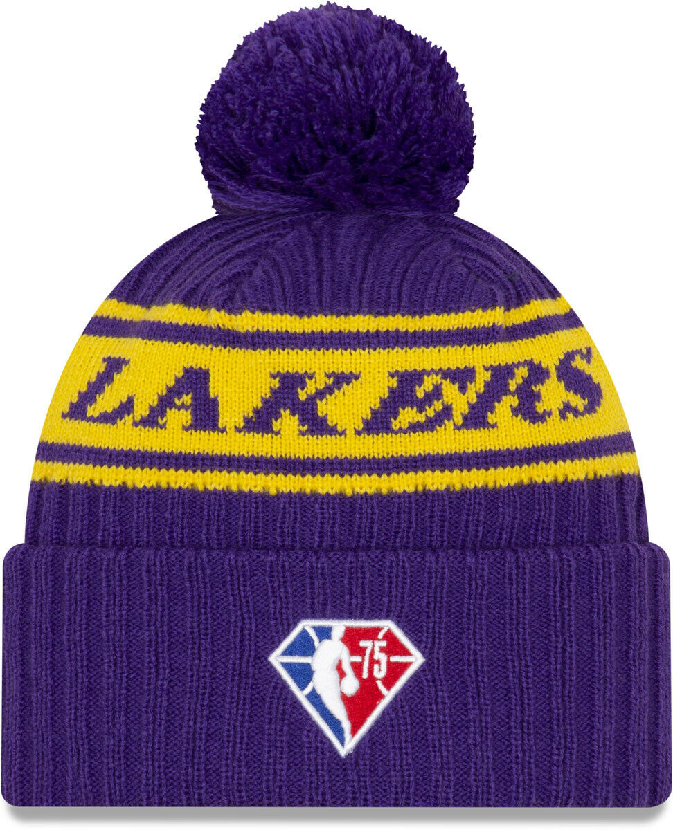 Los Angeles Lakers New Era NBA Cuffed Pom Knit Beanie Hat Yellow/Purple Crown/Visor Team Color Logo (Draft)