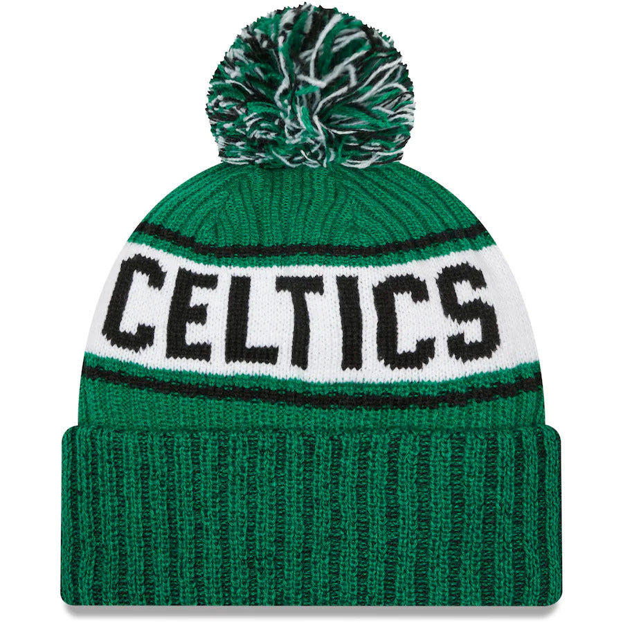 Boston Celtics New Era NBA Cuffed Pom Knit Beanie Hat White/Green Crown/Visor Team Color Logo (Knit Marl)